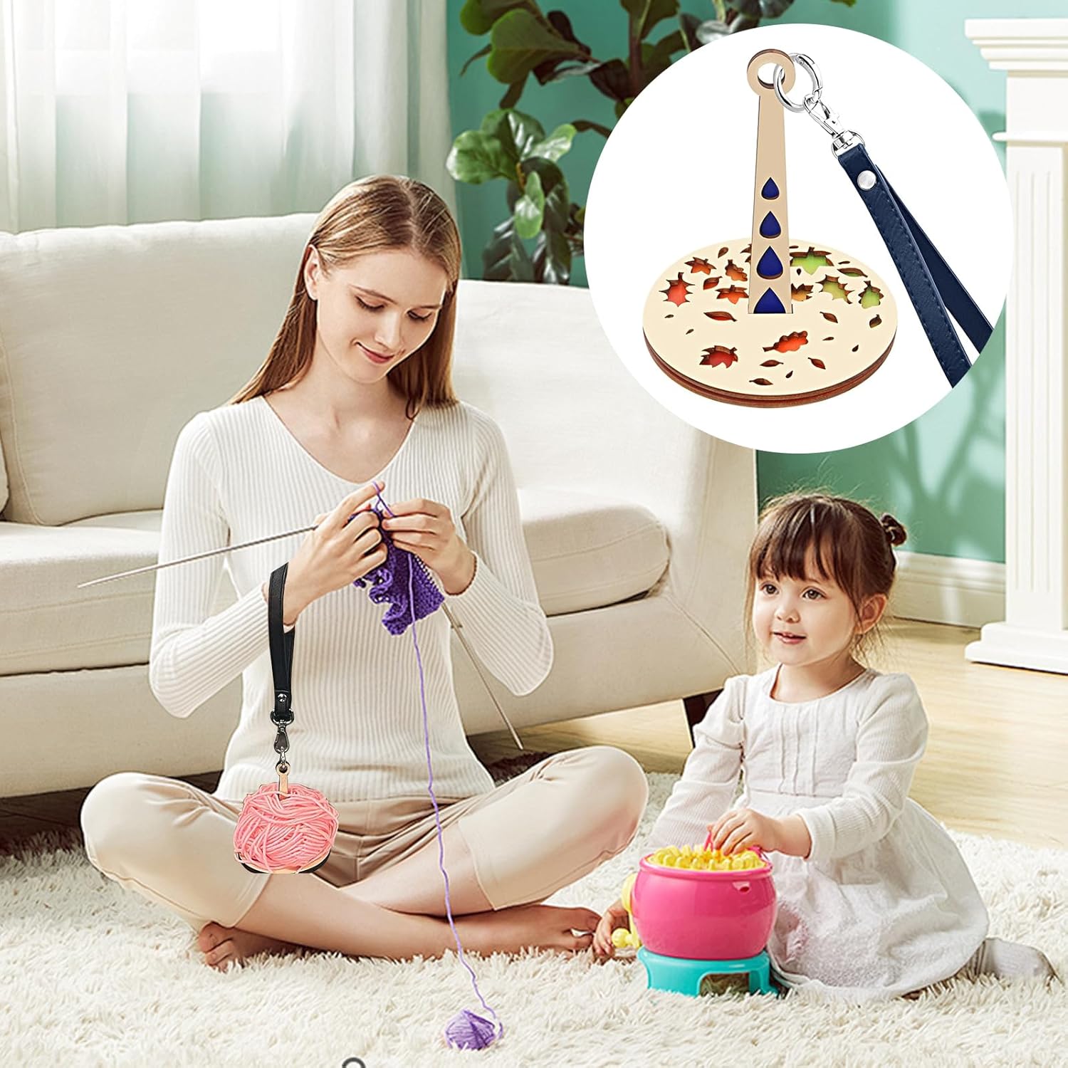 ✨ 360° Rotating Design for Smooth Knitting – Equipped with a leather wristband and a 360° infinite-rotation buckle, it allows your yarn to unwind effortlessly. Perfect for outdoor knitting, travel, or crafting on the go.